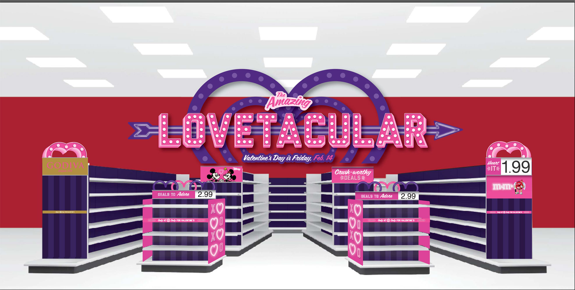Valentine's Day in-store collateral took on a neon carnival theme with "The Amazing Lovetacular". I partnered with art directors to concept and produce in-store signage from provided English and French written content, met signage requirements for various store floorplans as well as performed quality checks for prepress deliverables.